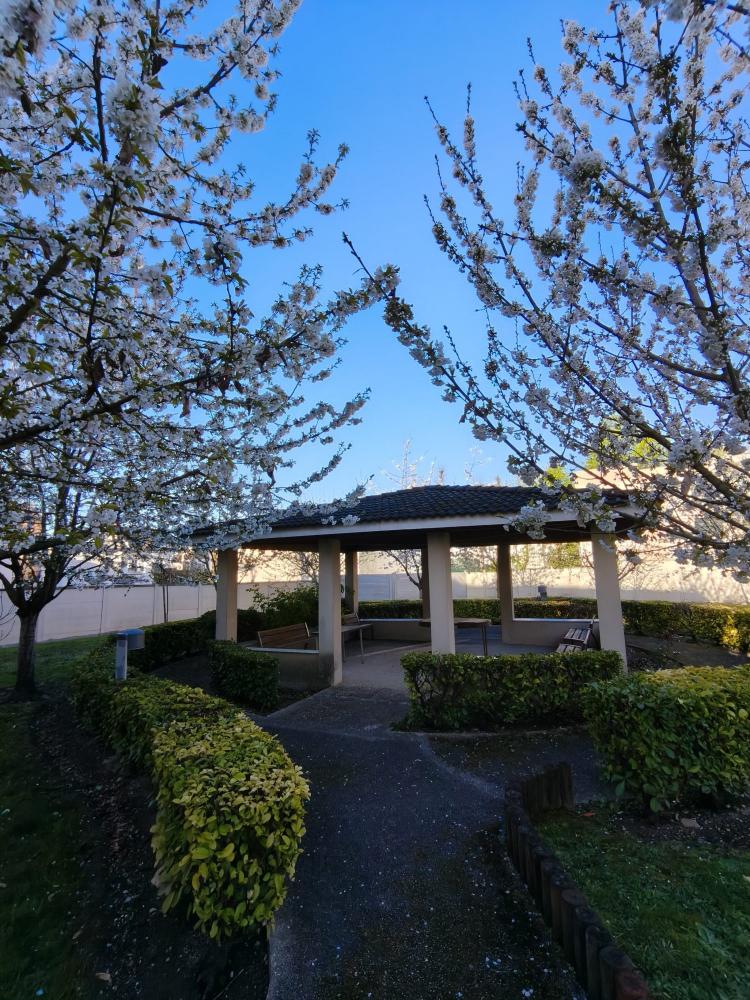 La résidence possède un bel espace vert où l’on peut se détendre.