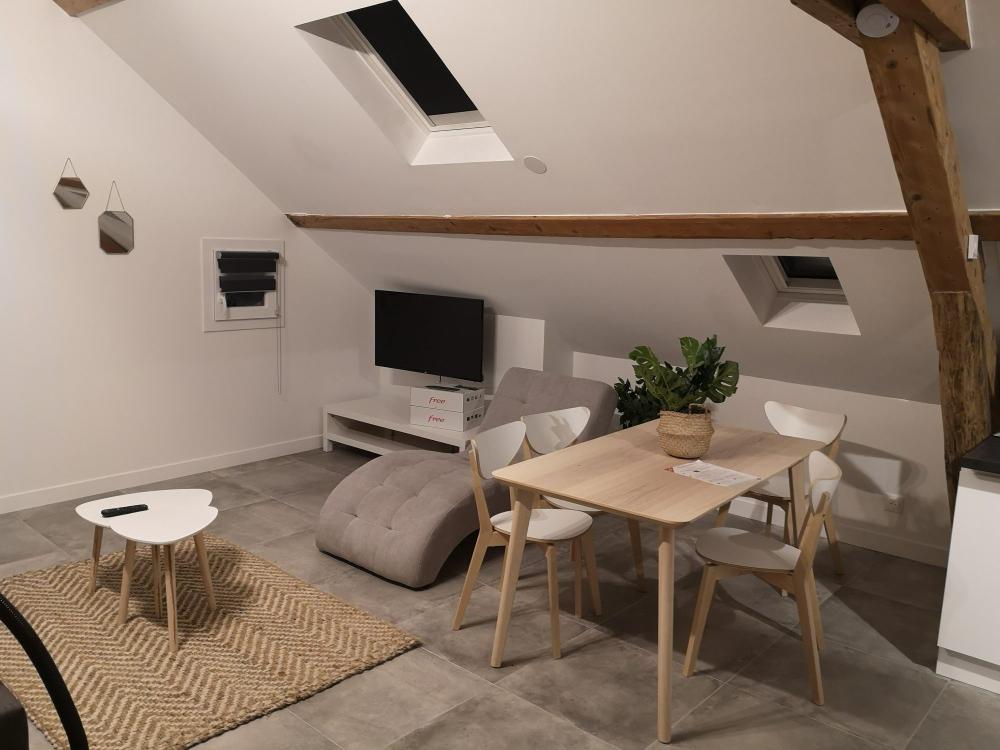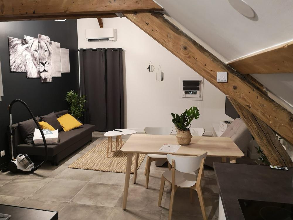 La surface de cet appartement est de 50 m² au sol (33.67 m² loi Carrez) se situe au 2éme et denier étage, vous apprécierez la hauteur sous plafond, sa grande pièce de vie et sa cuisine ouverte équipée..