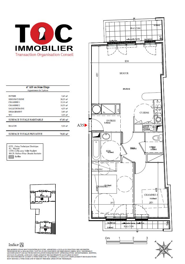 Dans une résidence des années 2012, proche du centre-ville, bel appartement de trois pièces-principales d’une surface de 66.97 m² loi Carrez comprenant : une entrée, cuisine ouverte sur séjour parqueté avec un balcon, une salle de bains, une salle d’eau, deux chambres avec rangement donnant toutes accès sur un balcon,