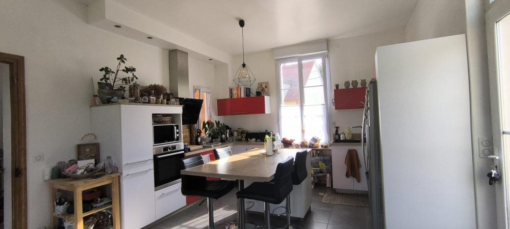 Au rez-de-chaussée, vous trouverez une entrée, , une cuisine américaine aménagée et équipée ouverte sur une salle à manger (27m²), un séjour lumineux de 17 m². À l’étage, trois grandes chambres chambres (17, 13 et 12 m²), une salle d’eau avec wc. Au rez-de-jardin : buanderie, salle de bains, wc, salle de jeux.